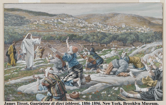 La purificazione dei dieci lebbrosi contenuta nel Vangelo di questa domenica non avviene a tu per tu. Forse per questo motivo Gesù non li tocca, ma invia ai sacerdoti coloro che sono ancora affetti da impurità. All’interno di una scena che inizia evocando un cammino, la guarigione avviene, non occasionalmente, lungo la via (Lc 17,14). Tutto lascia ritenere che l’ordine di presentarsi ai sacerdoti sia stato accolto dai lebbrosi come un segno di speranza. Le prescrizioni della Torah costringevano i lebbrosi a una vita isolata fuori dalle città e dai villaggi (cf. Lv 14,45-46). I sacerdoti, constatando l’avvenuta guarigione, sancivano il loro reinserimento sociale. Finché erano impuri, i lebbrosi erano stranieri al loro stesso popolo. La loro era un’emarginazione motivata a un tempo dalla malattia e dalla Legge.