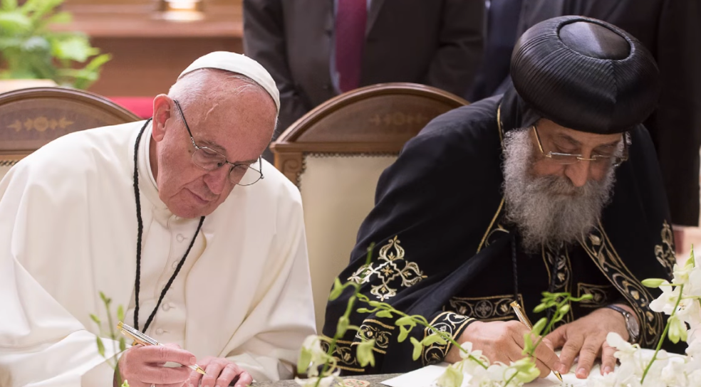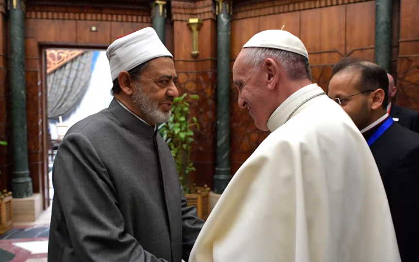 L’abbraccio con Ahmad al Tayyeb, l’imam di al Azhar; la preghiera davanti al «muro dei martiri», memoriale della strage nella chiesa dei Santi Pietro e Paolo al Cairo, in un omaggio compiuto insieme al copto Tawadros II, al patriarca ecumenico Bartolomeo e ai rappresentanti delle altre confessioni; e la messa allo Stadio dell’aeronautica con il piccolissimo gregge dei copti cattolici: è in queste tre istantanee che si può riassumere l’attesa visita apostolica di papa Francesco al Cairo, tenutasi il 28 e il 29 aprile 2017.