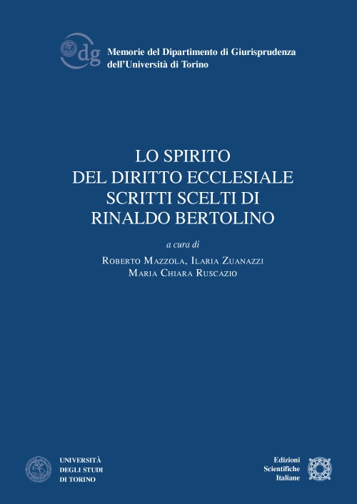 Il volume che raccoglie alcuni tra i lavori significativi, tra i tanti, del professor Bertolino, muove dall’invito sempre pressante e denso di speranza con cui egli – in tono amicale più che di superiorità, che pure gli deriva dalla qualità della sua monumentale opera che lo colloca tra i più fecondi e innovatori studiosi del diritto, e non solo ecclesiastico e canonico, nel Novecento e in questo scorcio del terzo millennio – si rivolge ai giovani che s’avvicinano agli studi di Diritto ecclesiastico e di Diritto ecclesiale.