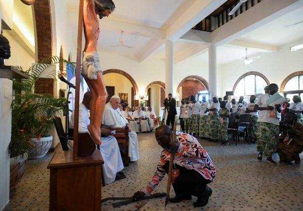 «Giù le mani dall’Africa» sono state le parole scandite da Francesco appena atterrato in terra congolese, dinanzi ad autorità civili e rappresentanti del corpo diplomatico che hanno interrotto il suo discorso-denuncia con una quindicina di applausi.