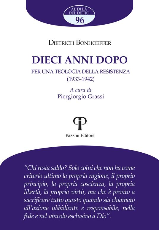 Sono numerosi i motivi che hanno spinto a ripubblicare il breve saggio di Bonhoeffer Dieci anni dopo, ritrovato nascosto, con altri testi, sopra le travi dell’armatura della casa paterna a Berlin Charlottenburg, per sottrarlo alle indagini della GESTAPO.
