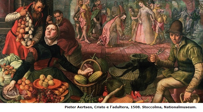 I farisei e gli scribi vogliono mettere alla prova Gesù che, non dimentichiamolo, sta insegnando nel Tempio. La vera accusa è rivolta a Gesù, è lui che vogliono additare come «adultero», non nei confronti di una donna bensì di Dio stesso. Ma come nessuno è in grado di lapidare la donna, così nessuno è in grado di accusare Gesù di adulterio contro la Torah e contro Dio e, sommessamente, con lo sguardo rivolto a terra, a uno a uno abbandonano la scena. Anche la donna, rimasta sola con Gesù, viene congedata con l’invito a «non peccare più». Di quale peccato si tratta? Di adulterio? E verso chi? Verso il marito o verso Dio? Non viene detto, in fondo non ha avuto importanza fin dall’inizio né per Gesù né per i suoi accusatori, che avevano altri intenti.