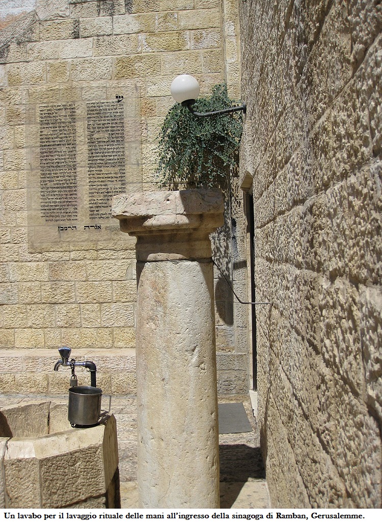 Riguardo invece la netilat yadayim, ovvero la «lavatura delle mani», che nei secoli ha salvato intere comunità da contagi e pestilenze, è stato giustamente notato (Stefani) che essa riguarda i sacerdoti prima di entrare in luogo sacro per l’offerta (Es 30,17-21). All’epoca di Gesù si era estesa ad alcuni gruppi minoritari, ma è stata codificata solo dalla Mišna (II sec. ev).