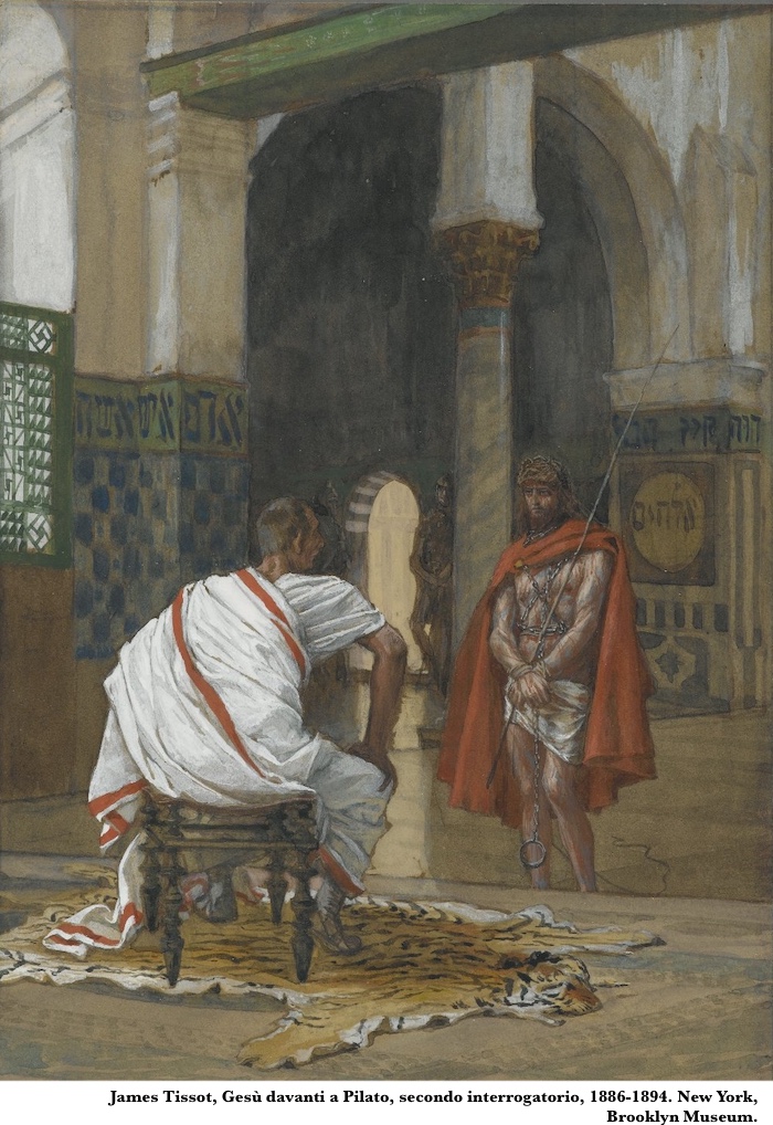 Chi dei due ha ragione? Ciò che Pilato vede, dal suo punto di vista, è credibile: uno che si spaccia per essere «re dei Giudei» può davvero costituire una minaccia per la «pax romana». Ma la visione di Pilato è limitata e soprattutto – forse è questo il vero punto di discrimine – legata al mantenimento di un certo status quo, alla paura di perdere qualcosa su cui si pensa di avere potere.