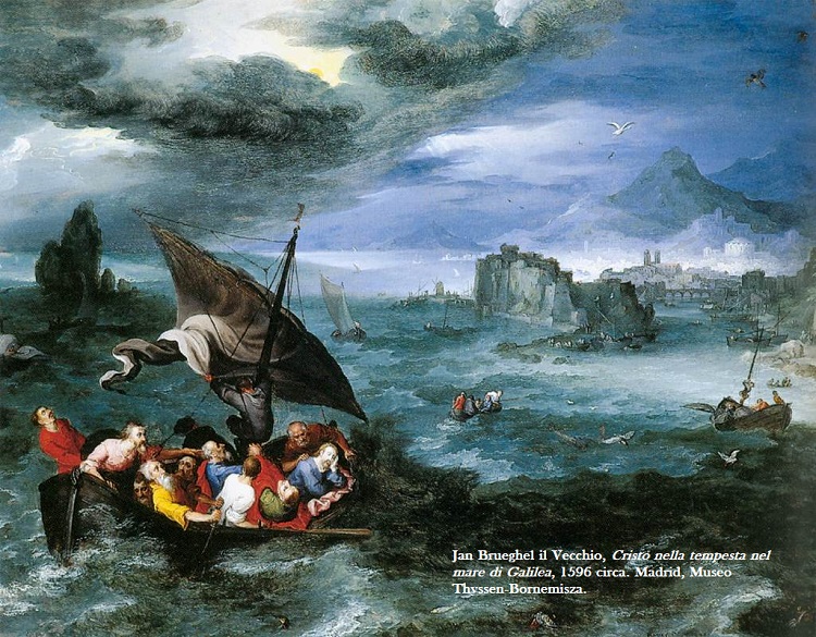 Al risveglio neppure Gesù sembra alzare la voce: apostrofa il mare con termini analoghi a quelli di un esorcismo (v. 39, cf. Mc 1,25), e soprattutto interpella i discepoli. Essi gli avevano chiesto se gli importasse della loro vita; egli chiede perché siano codardi (deiloi, v. 40), con un aggettivo che ha in sé una punta di commiserazione, e se non abbiano ancora fede (oupo echete pistin, vv. 40), quasi sovrapponendo i due termini e la vita dipendesse dalla fede.