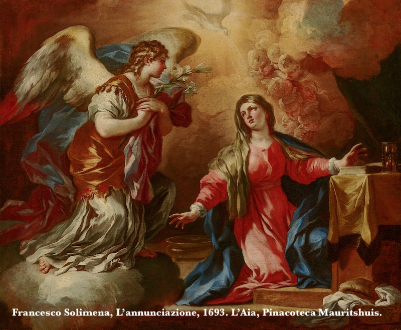 Segue quindi l’incontro tra l’angelo e Maria. In realtà Luca non ci dice se Maria riconosce in chi le sta davanti l’essere angelico o meno; il lettore ne è stato precedentemente informato, ma di fatto Maria no. È comunque evidente che le parole di questo visitatore la lasciano a dir poco perplessa: «Rallègrati, piena di grazia: il Signore è con te».