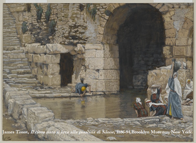 Dunque non ci sono conti da fare, bisogna piuttosto accogliere la luce. Il cieco infatti non chiede nulla, ma accetta di essere illuminato senza dire una sola parola: accetta la guarigione attraverso il fango – materia non nobile, ma che ricorda all’uomo la sua condizione creaturale – e va alla piscina là dove si attingeva l’acqua della libagione, affrontando poi critiche ed emarginazione anche dalla propria famiglia, perché la luce è un elemento dirimente e giudicante. Giunge infine a una confessione di fede di fronte a un’indiretta autorivelazione di Gesù (v. 37).