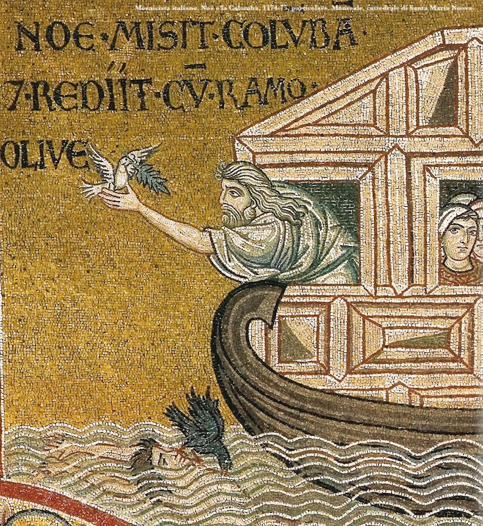 L’altra immagine che troviamo nel Vangelo di oggi è quella della colomba: «Ho contemplato lo Spirito discendere come una colomba dal cielo e rimanere su di lui». Anche qui la memoria biblica ci riporta a un’altra colomba, quella di Noè che ritorna da lui con un ramoscello d’ulivo, segno che la vita è ritornata a risplendere sulla terra: «E la colombatornò a lui sul far della sera; ecco, essa aveva nel becco una tenera foglia di ulivo. Noè comprese che le acque si erano ritirate dalla terra» (Gen 8,11).