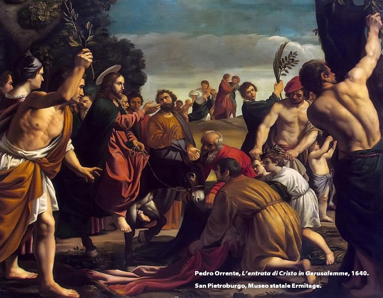 La processione degli ulivi sembra prolungarsi senza soluzione di continuità fino all’orto che da quella pianta prende nome; anzi non si arresta neppure lì e, passo dopo passo, conduce fino al Calvario. Quella delle Palme è l’unica domenica dell’anno che propone una lunga lettura dedicata alla Passione.