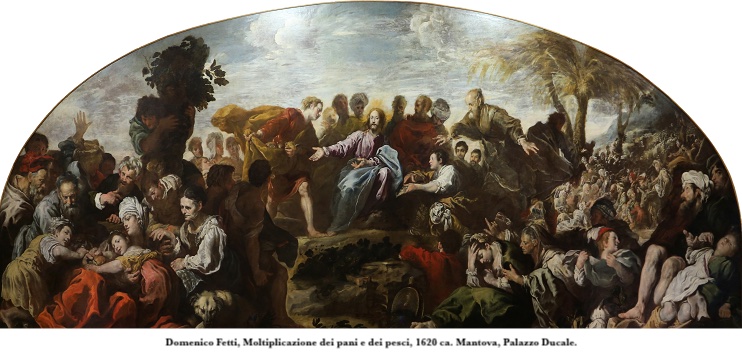 La struttura del racconto è più o meno la stessa in tutte e quattro le narrazioni, ma in questo caso seguiamo quella giovannea: Gesù si sposta «su un’altra riva» – forse per prendere un po’ di respiro e di riposo – e molte persone lo raggiungono. Di fronte a così tanta gente la prima preoccupazione di Gesù è di dare loro da mangiare, e per questo motivo pone questa domanda a Filippo: «Dove potremo comprare il pane perché costoro abbiano da mangiare?».