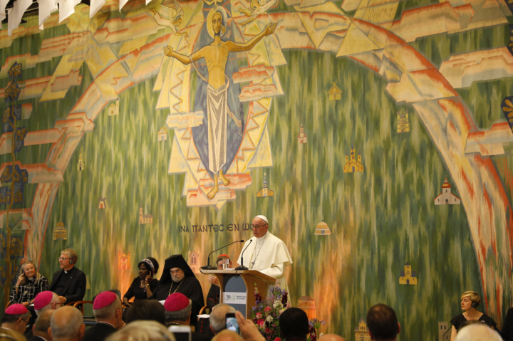 Il 21 giugno papa Francesco, accogliendo l’invito del segretario generale del Consiglio ecumenico delle Chiese (CEC) Olav Fykse Tveit e della moderatrice del Comitato centrale del CEC Agnes Abuom, ha compiuto un pellegrinaggio ecumenico a Ginevra, sede del CEC, in occasione del 70° anniversario della sua fondazione, che avvenne ad Amsterdam il 23 agosto 1948. Al CEC, un’unione fraterna di Chiese costituita oggi da 348 membri di tradizione prevalentemente protestante, anglicana e ortodossa, la Chiesa cattolica partecipa come osservatrice, mentre è membro a pieno titolo della commissione teologica Fede e costituzione e della Commissione missione mondiale ed evangelizzazione (CWME). Il pellegrinaggio, che aveva come motto «Camminando, pregando e lavorando insieme», ha avuto come momenti centrali una preghiera ecumenica e un incontro presso il CEC, durante il quale il segretario Tveit ha detto a Francesco che «la sua leadership è un segno forte di come possiamo trovare espressioni di questa unità nella diakonia e nella missione». Mentre il papa si è richiamato al DNA missionario del movimento ecumenico, affermando: «Come alle origini l’annuncio segnò la primavera della Chiesa, così l’evangelizzazione segnerà la fioritura di una nuova primavera ecumenica».