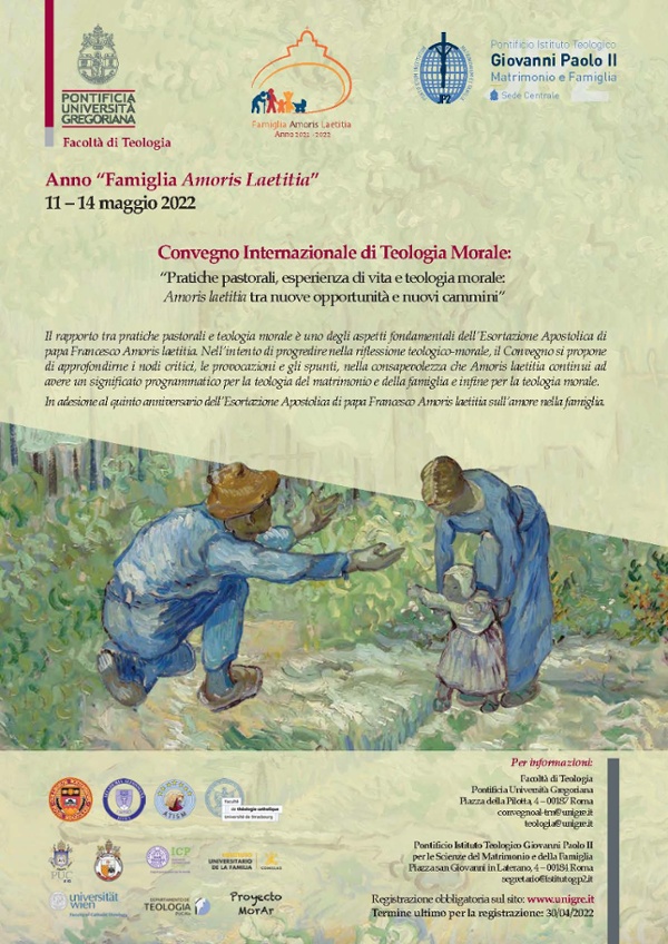 Nel recepire questa istanza la Pontificia università gregoriana e il Pontificio Istituto Teologico "Giovanni Paolo II" per le Scienze del Matrimonio e della Famiglia organizzano a Roma nei giorni 11-14 maggio 2022 un convegno internazionale che intende approfondire i nodi critici, le suggestioni, le provocazioni, gli spunti offerti, soffermandosi in particolare su uno dei contenuti fondamentali dell’esortazione, il rapporto tra pratiche pastorali e teologia morale.